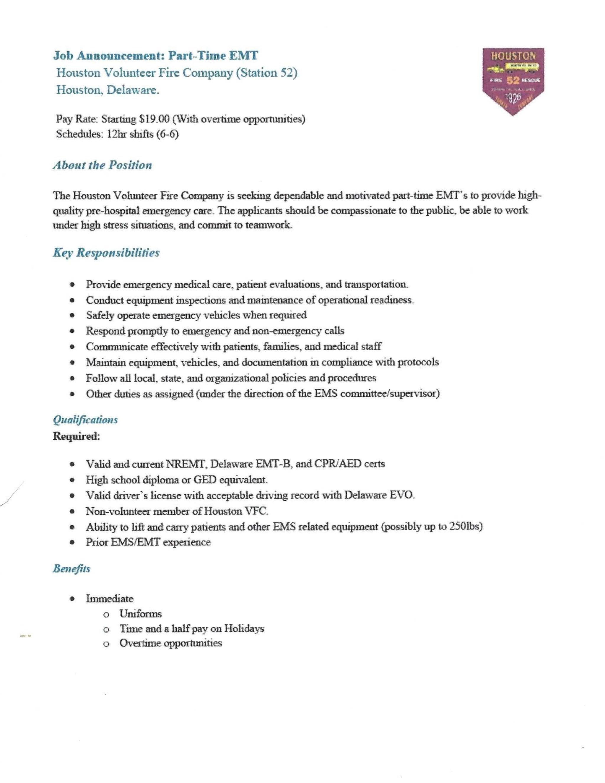 Help us to continue making a difference in our community. Please take a moment to make a tax deductible donation to the Houston Fire Company.